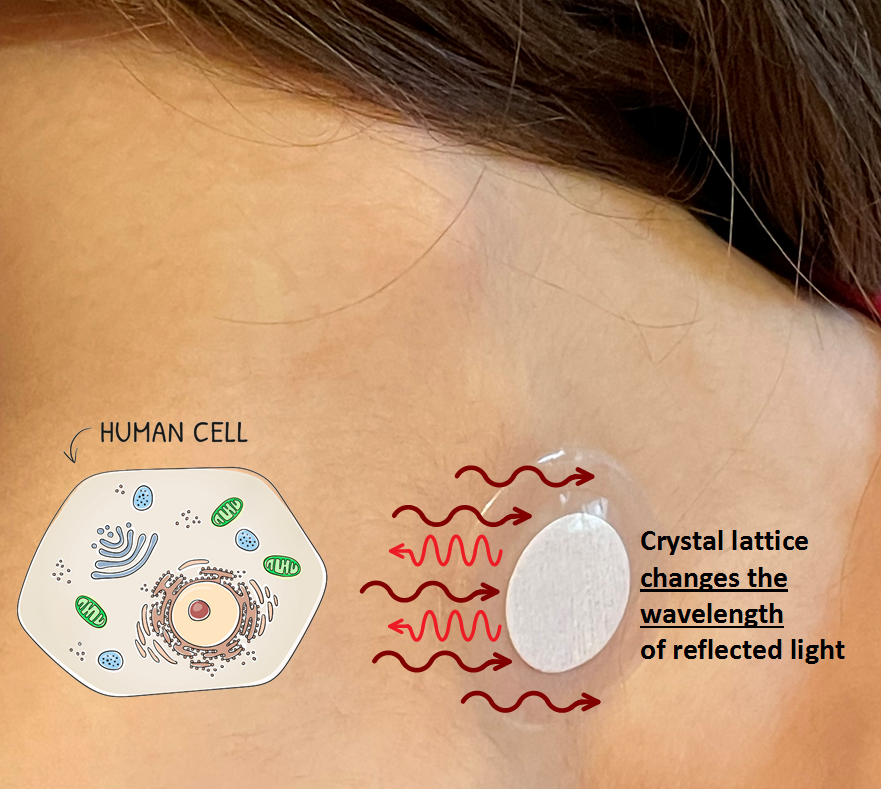 Lifewave patches use infrared light from the human body and reflect it back to the body after the wavelength is adjusted by an organic crystal lattice (made of salts, sugars, and amino acids). The nano-scale crystals are made to a precise size and spacing in order to reflect back specific wavelengths of infrared and visible light (different wavelengths for different patches).
