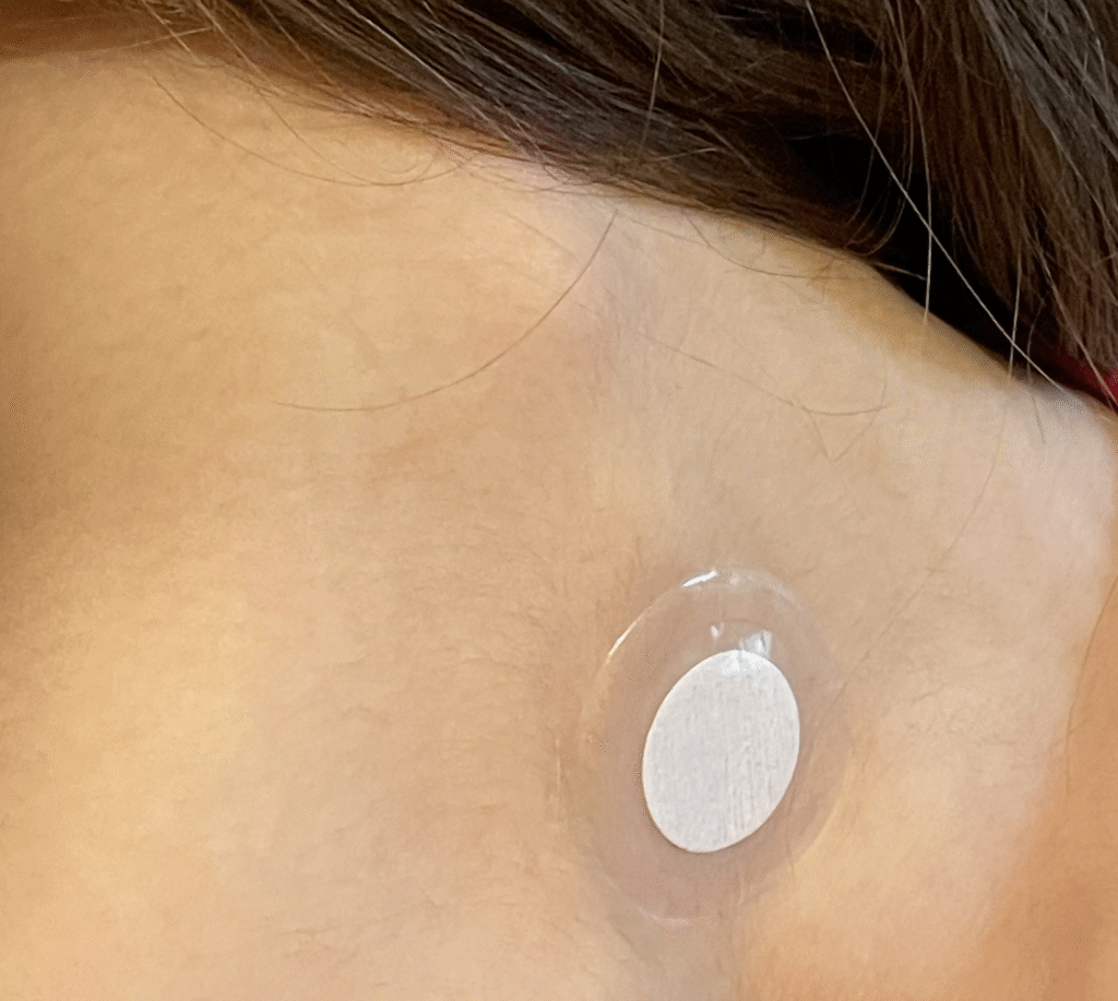 The back of the neck is a typical place to put a patch because there are a number of nerve bundles there.
