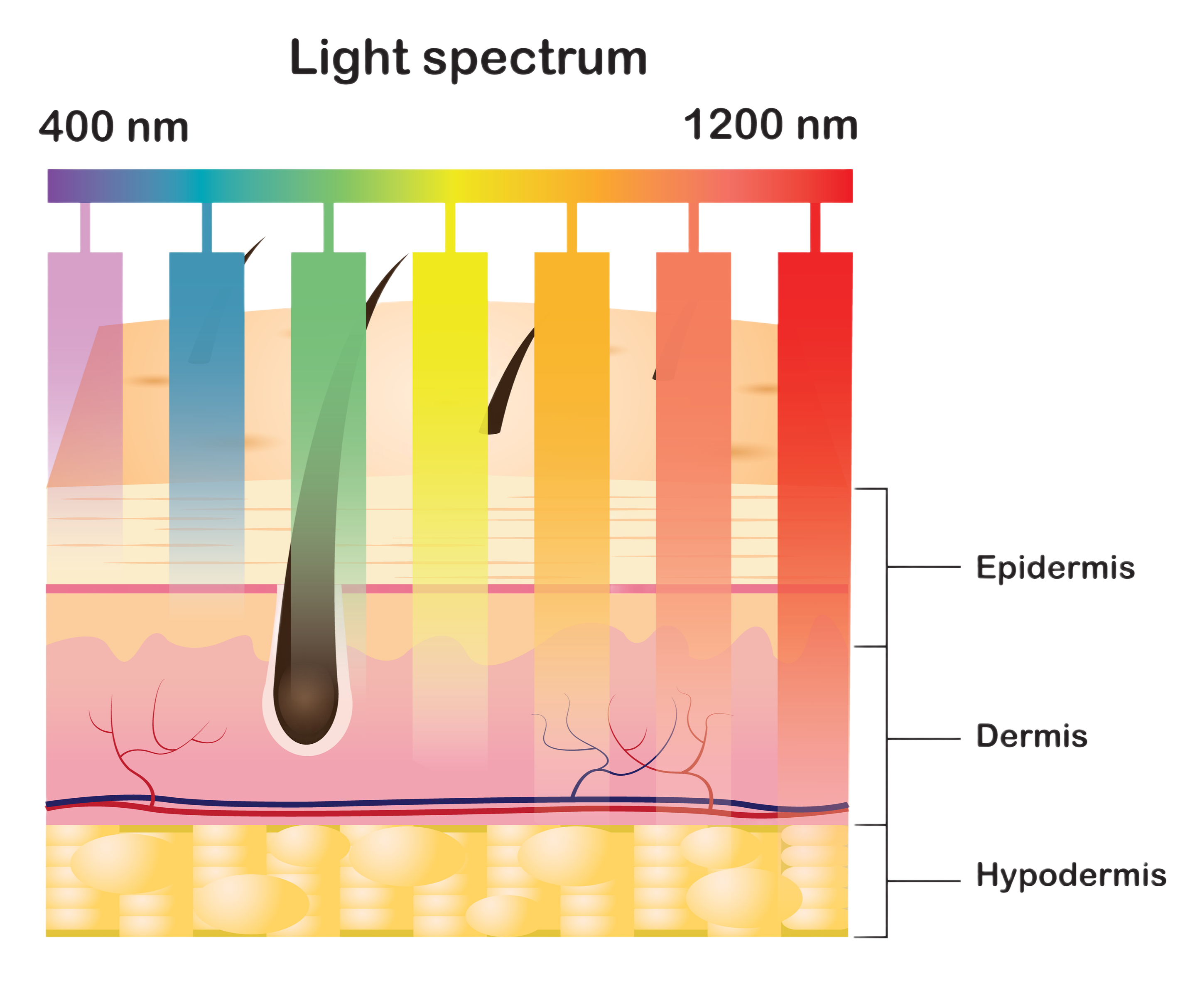 • Longer wavelength (or lower frequency) light can penetrate deeper into the body
