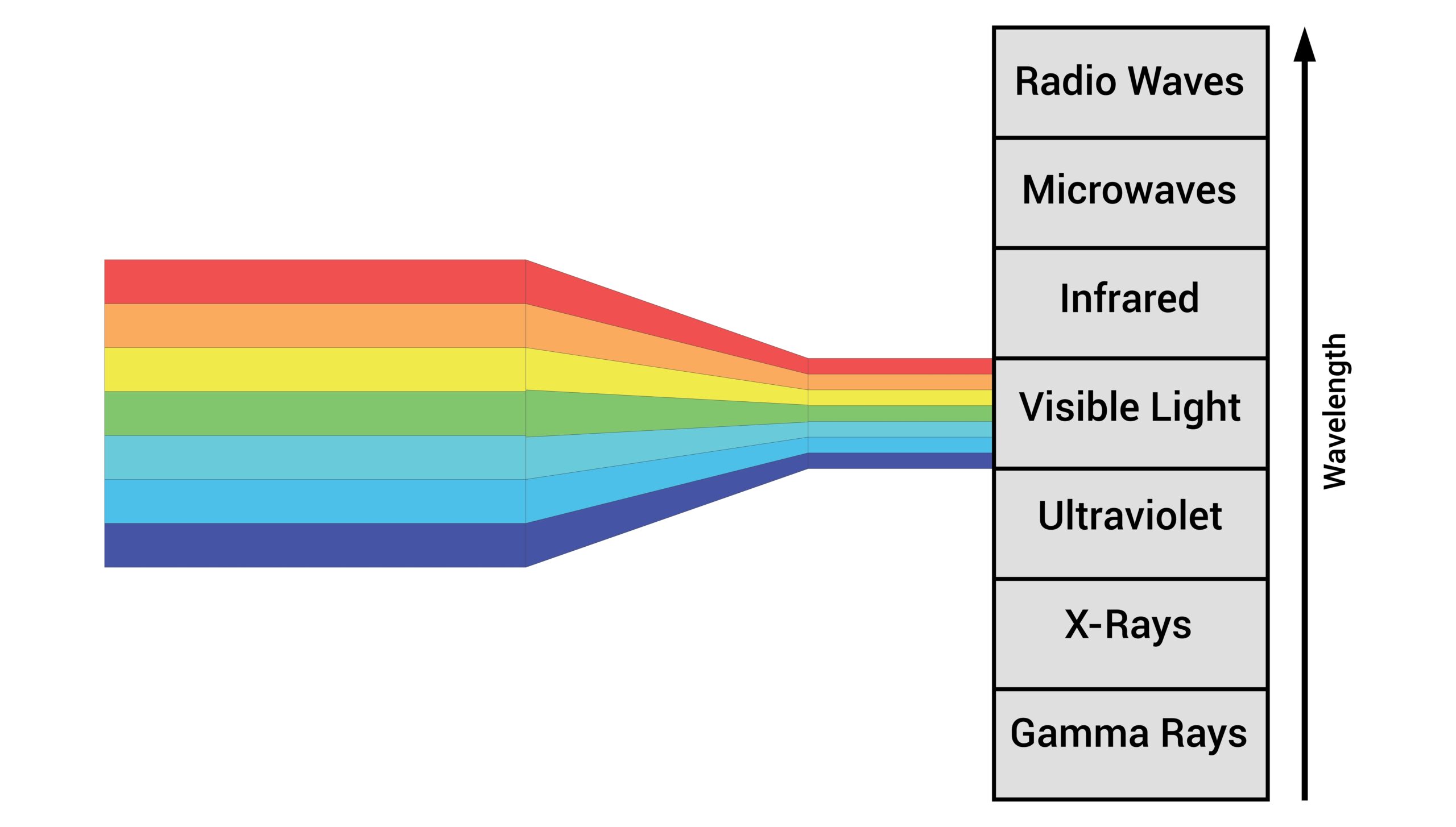 The Electromagnetic (EM) Spectrum shows all the different kinds of EM radiation (or light) we can measure.
